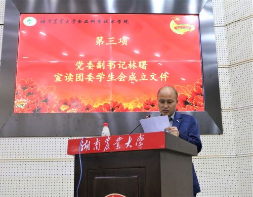 (党委副书记林曙宣读团委学生会成立文件)