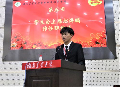 (第二十六届团委学生会学生事务中心主任兼执行主席赵烨鹏作任职发言)